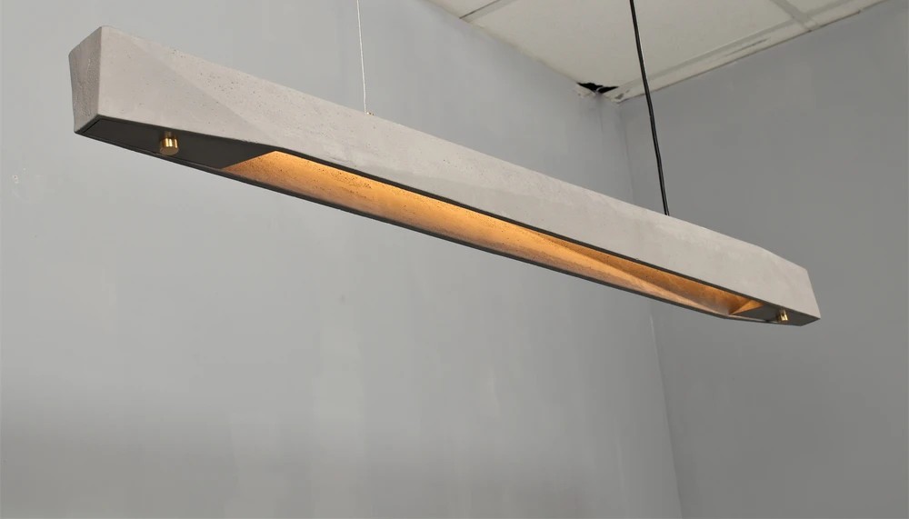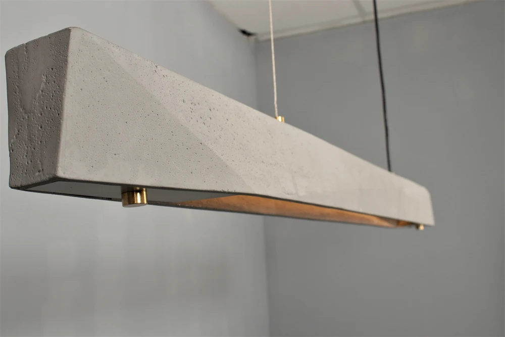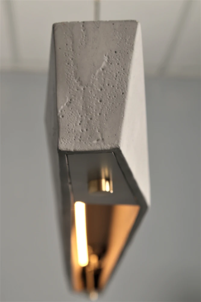 גוף תאורה תלייה מעוצב. לשימוש תאורת פנים. מקור אור 24W LED. מיוצר מבטון ואלומיניום. זמין בצבע בטון וזהב.