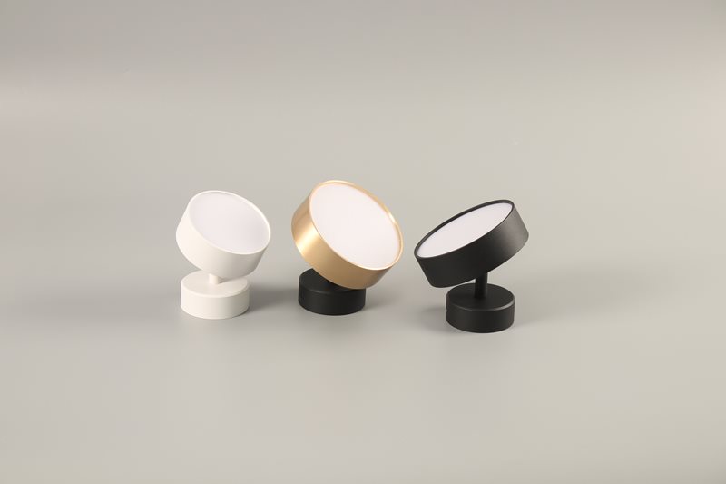 גוף תאורה צילינדר צמוד תקרה מעוצב מתכוונן לשימוש תאורת פנים. מקור אור 7W LED BRIDGELUX. מיוצר מאלומיניום. זמין בצבע שחור מט, לבן מט, זהב עם בסיס שחור. ניתן לעמעום TRIAC