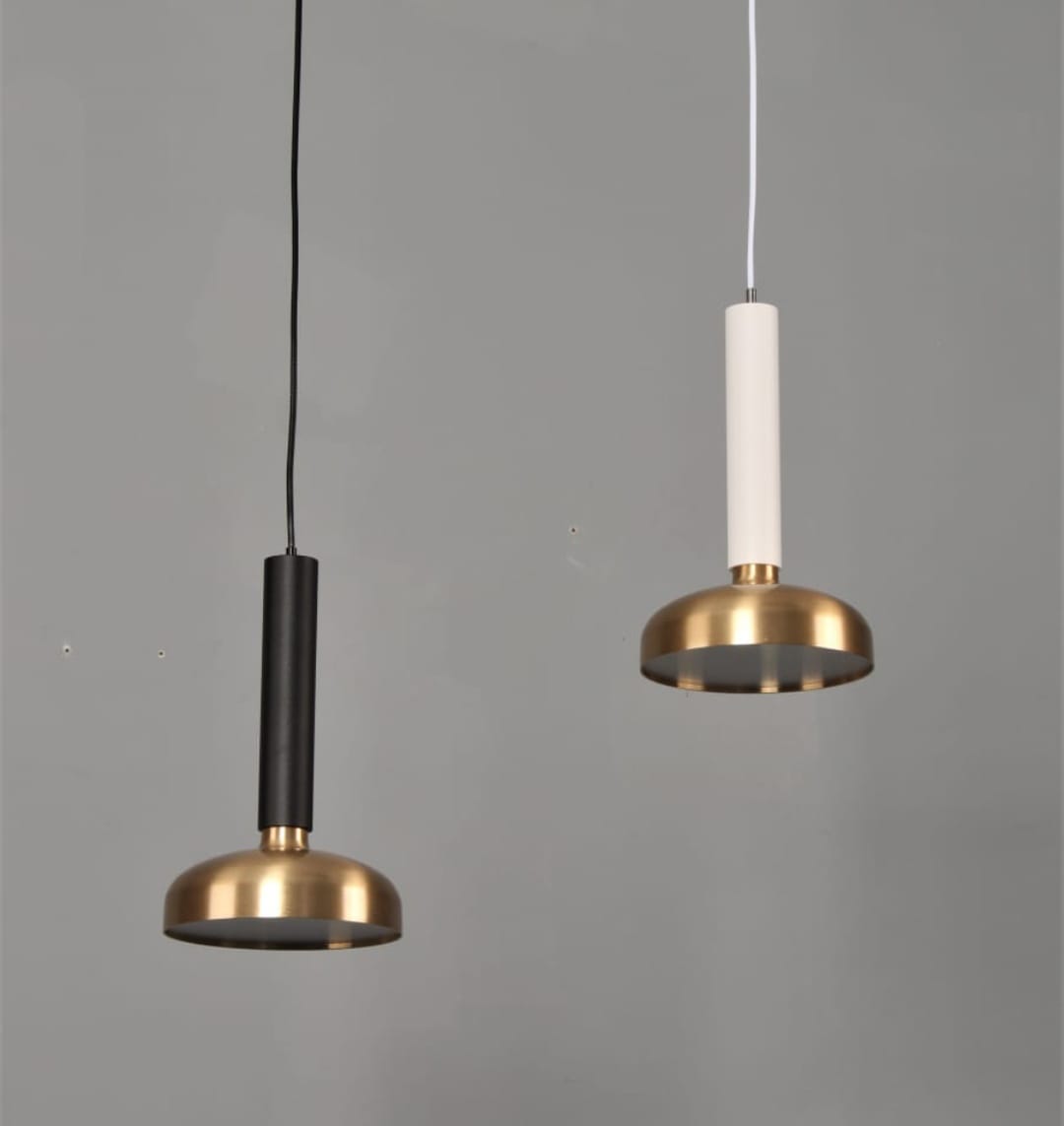 גוף תאורה צילינדר תלייה מעוצב מרשים במיוחד לשימוש תאורת פנים. מקור אור 12W LED BRIDGELUX. מיוצר מאלומיניום. זמין בצבע שחור וזהב, לבן וזהב.