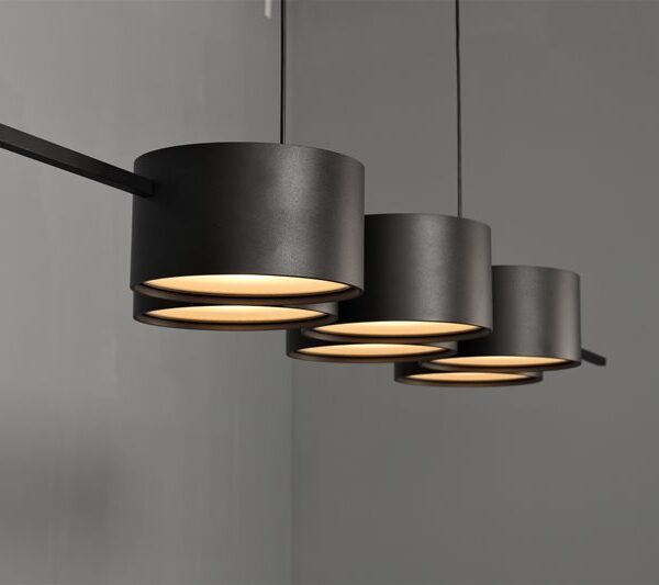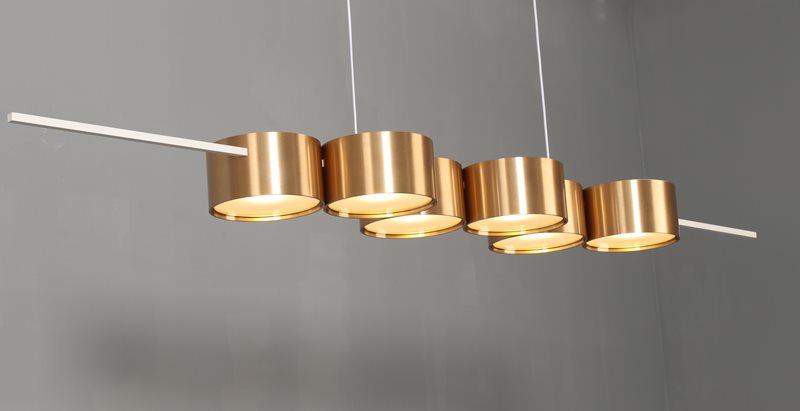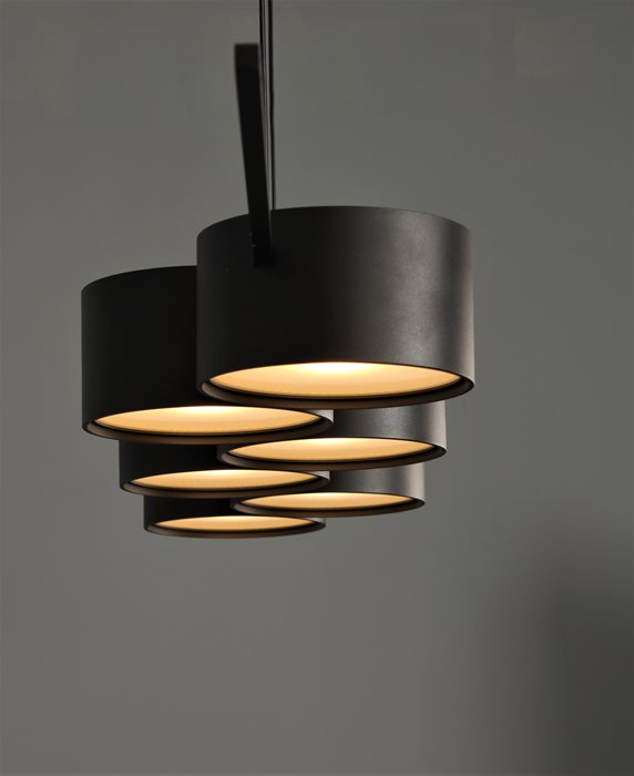 גוף תאורה תלייה מעוצב מרשים במיוחד לשימוש תאורת פנים. מקור אור 6X18W LED. מיוצר מאלומיניום. זמין בצבע שחור מט, לבן וזהב מט, שחור וזהב מט. מתאים לאי ופינת אוכל