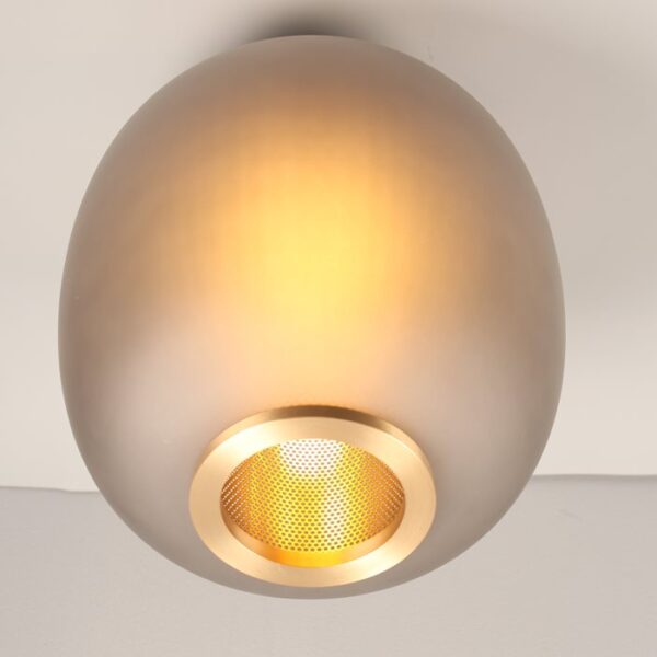 גוף תאורה תלייה מעוצב בזכוכית אפורה שעברה ליטוש חולי לשימוש תאורת פנים. מקור אור E27 8W LED. מיוצר מאלומיניום וזכוכית. זמין בצבע שחור מט, זהב מט.