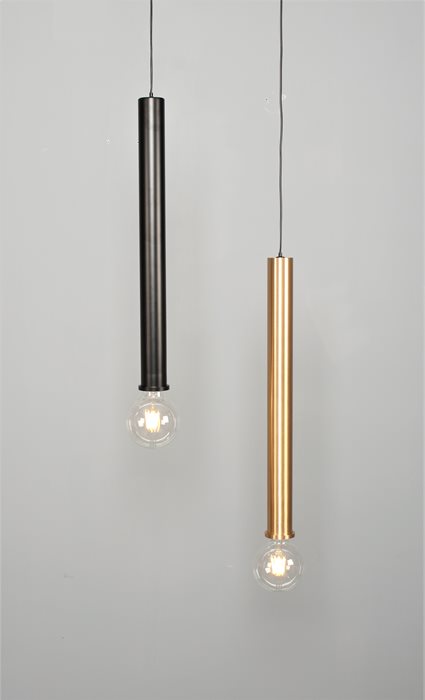 גוף תאורה צילינדר תלייה מעוצב מודרני מרשים במיוחד, נבחר כתאורה אדריכלית לאזורים אקסקלוסיביים לשימוש תאורת פנים. מקור אור E27 מיוצר מאלומיניום. זמין בצבע שחור, זהב.