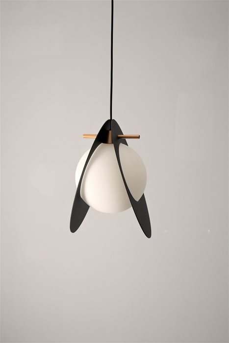 גוף תאורה תלייה מעוצב לשימוש תאורת פנים. מקור אור G9. מיוצר מאלומיניום וזכוכית חלבי. זמין בצבע שחור מט, לבן מט.