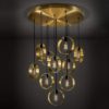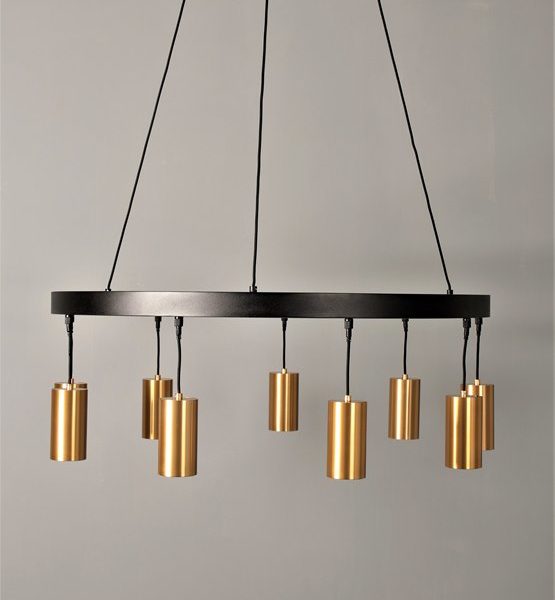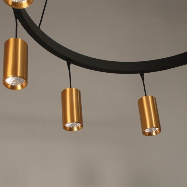 גוף תאורה תלייה מעוצב מטבעת פנימית גדולה ודקה במיוחד עלייה מותקנים 9 צילינדרים בהספק של 7W כל אחד לשימוש תאורת פנים. מקור אור 63W LED BRIDGELUX. מיוצר מאלומיניום. זמין בצבע שחור וזהב.