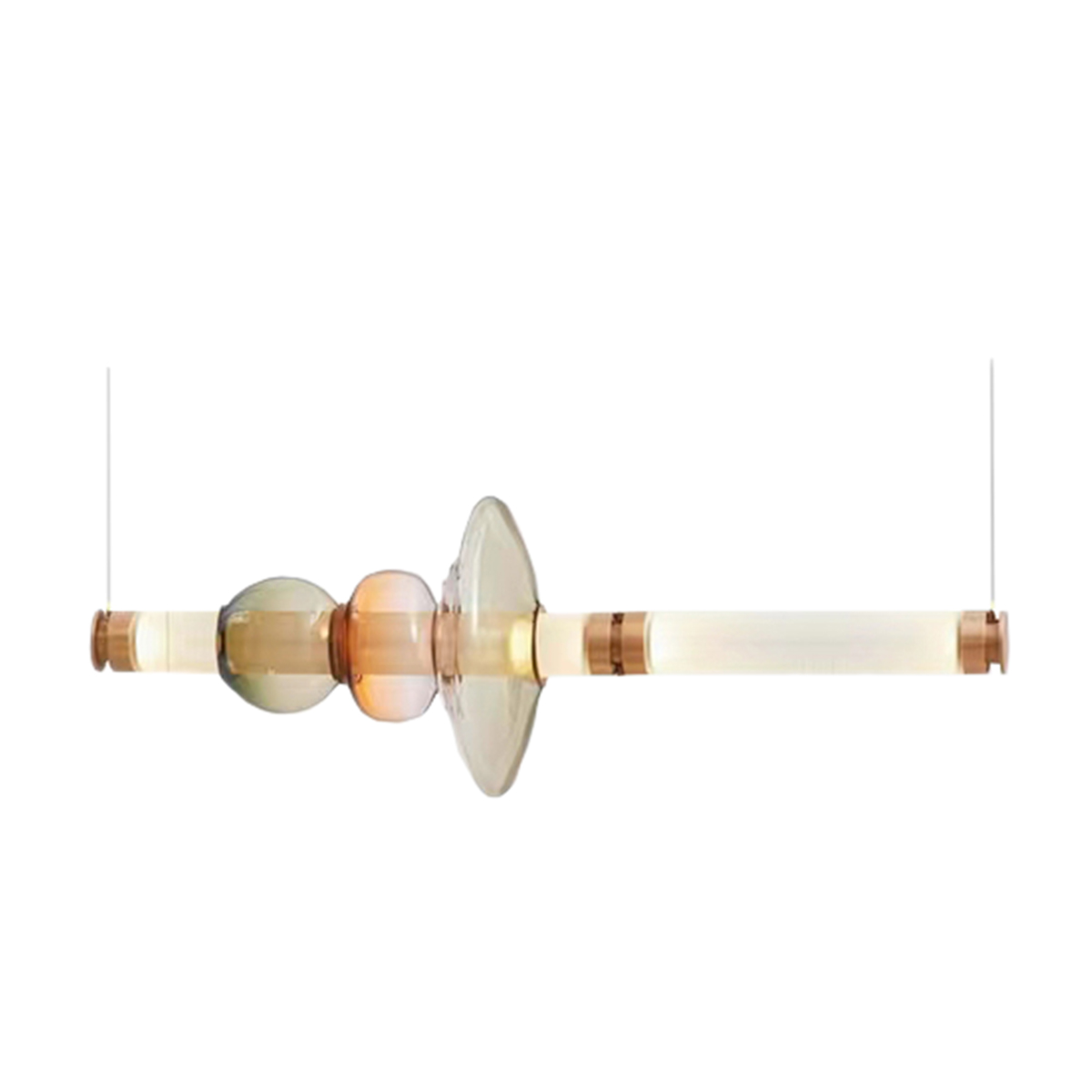 גוף תאורה תלייה מעוצב לשימוש תאורת פנים. מקור אור 15W LED. מיוצר מדקופיר וזכוכית. זמין בצבע צבעוני.