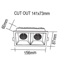 גוף תאורה ספוט שקוע DARK LIGHT לשימוש תאורת פנים. מקור אור 2X12W LED COB BRIDGELUX. מיוצר מאלומיניום. זמין בצבע לבן מט פנים שחור, מסגרת דקה במיוחד.
