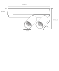 גוף תאורה צילינדר צמוד תקרה מתכוונן  מעוצב לשימוש תאורת פנים. מקור אור 2X12W LED BRIDGELUX COB. מיוצר מאלומיניום. זמין בצבע לבן מט, שחור מט.