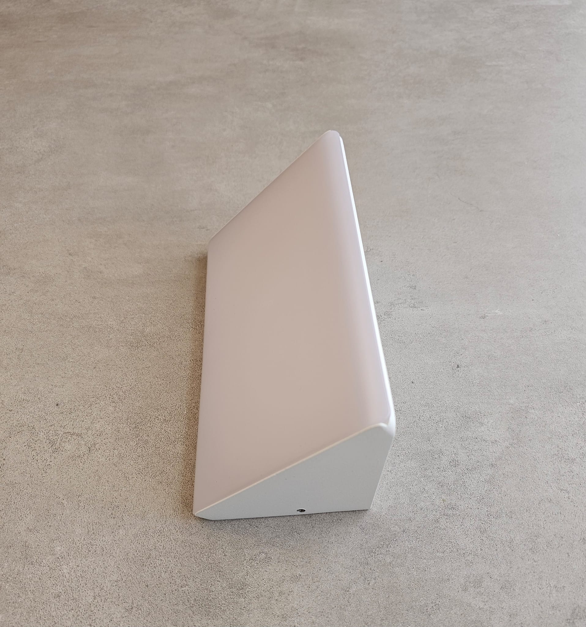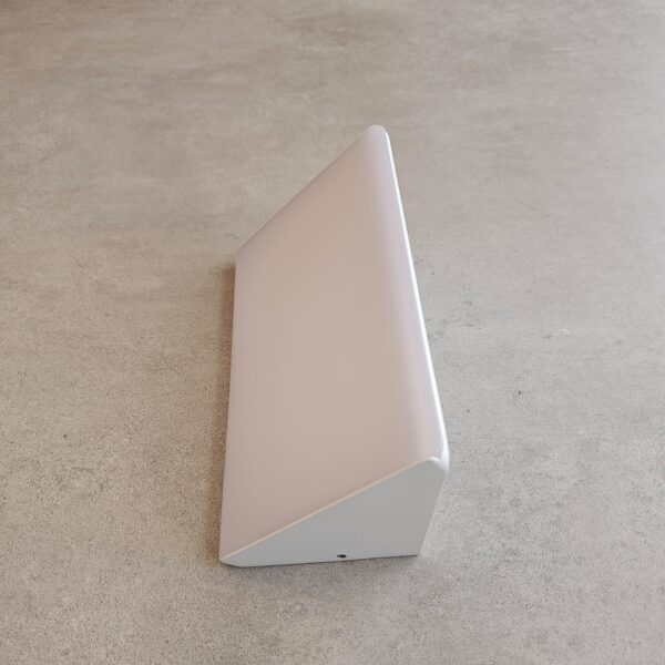 גוף תאורה צמוד קיר מעוצב משופע ב45 מעלות לשימוש תאורת חוץ. מקור אור 21W LED OSRAM. מיוצר מאלומיניום. מוגן מים. זמין בצבע שחור מט, לבן מט. אפור מטלי.