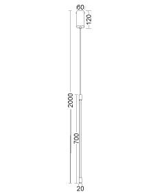 | מידות במ"מ | קוטר=20 גובה=700 אורך תלייה כללי=2000 |