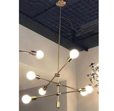 גוף תאורה תלייה מעוצב לשימוש תאורת פנים. מקור אור 6XE27. מיוצר מאלומיניום. זמין בצבע שחור מט, זהב מט. מומלץ נורות לד דמוי פחם.