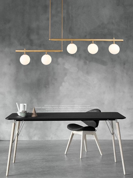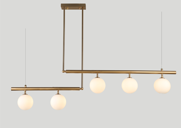 גוף תאורה תלייה מעוצב לשימוש תאורת פנים. מקור אור G9 5X11W LED. מיוצר מאלומיניום וזכוכית חלבית. זמין בצבע שחור מט, זהב מט.