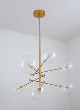 גוף תאורה תלייה עגול מעוצב עדין לשימוש תאורת פנים. מקור אור G-4X6. מיוצר ממתכת מגולוון וזכוכית שקופה. זמין בצבע ברונזה מט. ללא נורות.