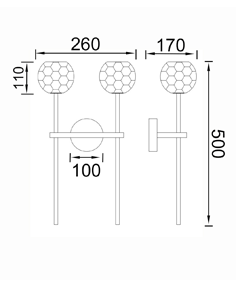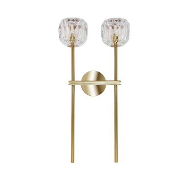 גוף תאורה צמוד קיר מעוצב לשימוש תאורת פנים. מקור אור LEDX2 G9. מיוצר ברזל מגולוון + זכוכית קריסטל. זמין בצבע ברונזה וזכוכית.