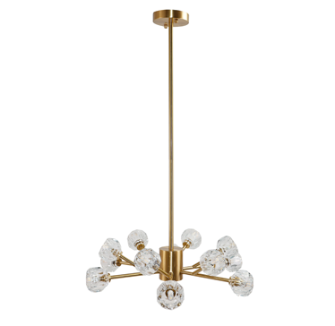 גוף תאורה תלייה עגול מעוצב עדין וינטג' לשימוש תאורת פנים. מקור אור G-9X12. מיוצר ממתכת מגולוון וזכוכית קריסטל שקופה. זמין בצבע ברונזה מט. ללא נורות.