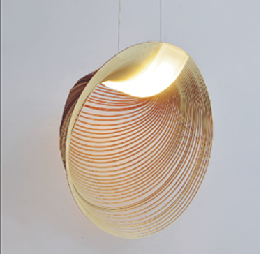 גוף תאורה תלייה מעוצב עדין במיוחד לשימוש תאורת פנים. מקור אור 12W LED EDISON. מיוצר מאלומיניום ומיתרי עץ. זמין בצבע שחור מט, עץ טבעי. מגיע בקוטר> 40, 60, 80