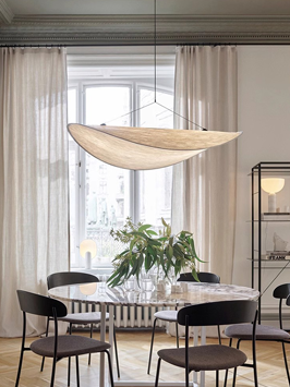 גוף תאורה תלייה מעוצב מרשים במיוחד לשימוש תאורת פנים. מקור אור 36W LED EDISON. מיוצר מאלומיניום ובד. זמין בצבע שחור מט ובד לבן.