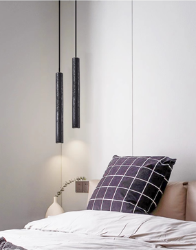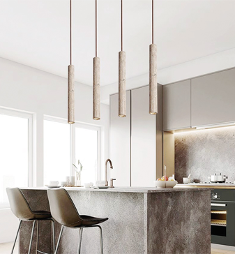 גוף תאורה צילנדר תלייה טרוונטין מעוצב לשימוש תאורת פנים. מקור אור 5W BRIDGELUX LED. מיוצר אבן טבעית + אלומיניום. זמין בצבע שחור מט, טרוונטין.