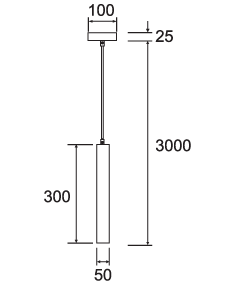 | מידות במ"מ | קוטר=50 גובה=300 אורך תלייה כללי=3000 |