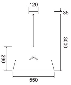 | מידות במ"מ | קוטר=550 גובה=290 אורך תלייה כללי=3000 |