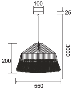 | מידות במ"מ | קוטר=550 גובה=200 גובה תלייה כללי=3000 |