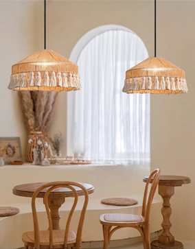 גוף תאורה תלייה במבוק קש מעוצב לשימוש תאורת פנים. מקור אור E27 LED. מיוצר חבל + קש. זמין חבל בז'.