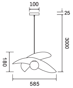| מידות במ"מ | אורך=585 גובה=180 גובה תלייה כללי=3000 |
