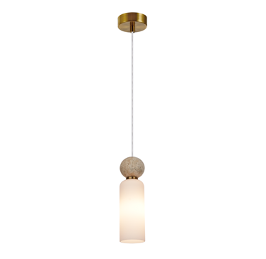 גוף תאורה תליה מעוצב לשימוש תאורת פנים. מקור אור G-9 LED מאבן טרוורטין+ זכוכית אופל. זמין בצבע זהב, שחור.