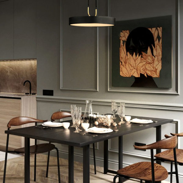 גוף תאורה תלייה מעוצב מודרני מרשים במיוחד, לשימוש תאורת פנים. מקור אור 36W LED. מיוצר ממתכת. זמין בצבע שחור מט וזהב.