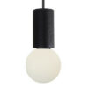 גוף תאורה תלייה מעוצב מודרני עדין לשימוש תאורת פנים. מקור אור G9. מיוצר מבטון שחור וזכוכית חלבית. זמין בצבע שחור.