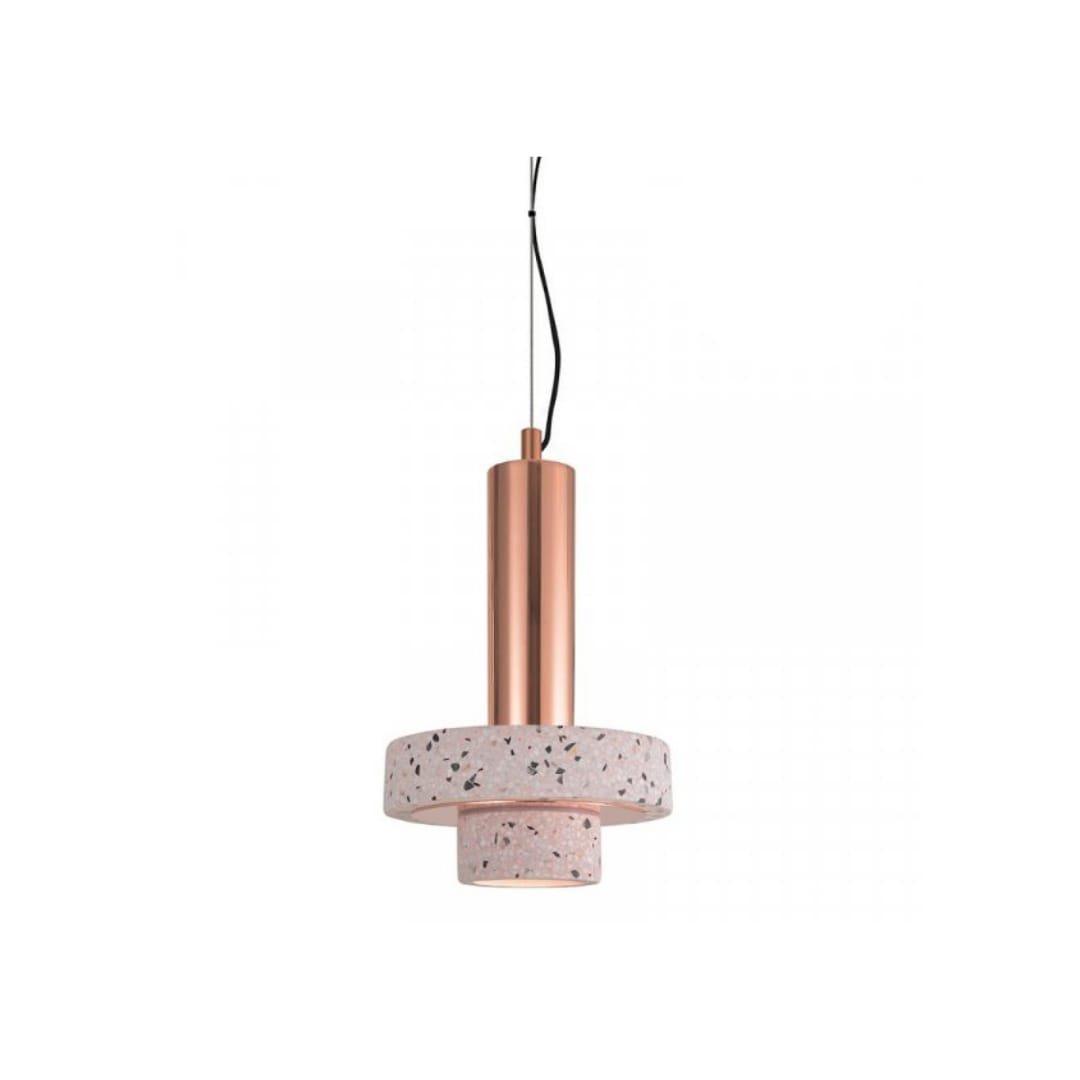 גוף תאורה תלייה מעוצב מודרני עדין לשימוש תאורת פנים. מקור אור GU-10 7W LED. מיוצר מאלומיניום ושיש סימנט. זמין בצבע רוז גולד.