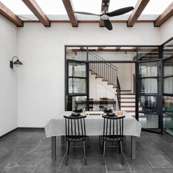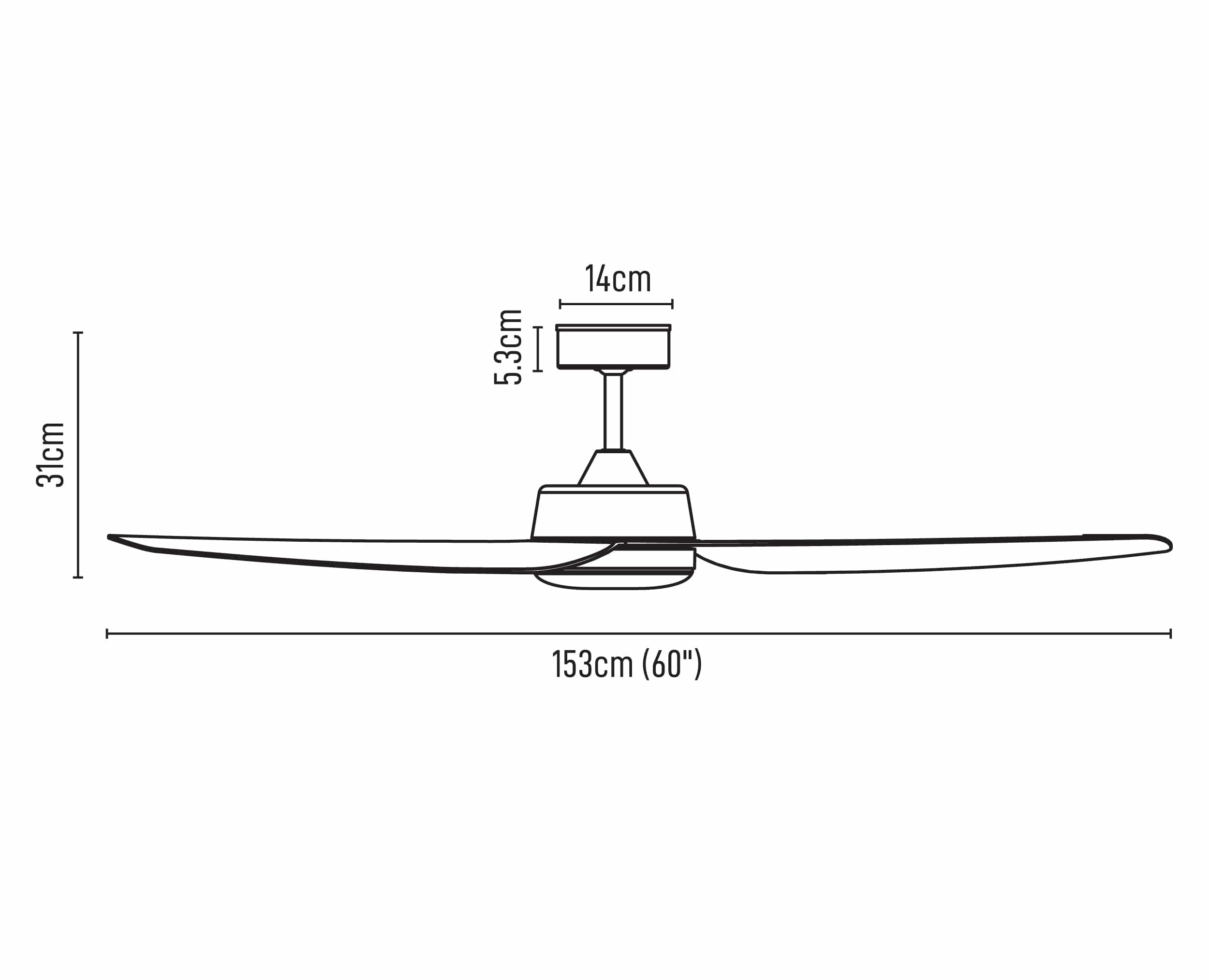 מאוורר תקרה בעיצוב מודרני וחדשני, מוגן מים, מתאים להתקנה מחוץ לבית במרפסות ופרגולות. מאוורר תקרה בעל סגנון עיצוב ייחודי. מאוורר התקרה מגיע עם ערכת תאורת לד בעוצמה של 23, מגיע רק ב60".