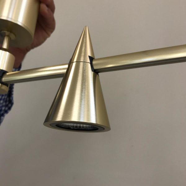 גוף תאורה פירמידה מעוצב לפס צבירה מגנטי לשימוש תאורת פנים. מקור אור PHILIPS LED COB 7W. מיוצר ובצבע פליז.